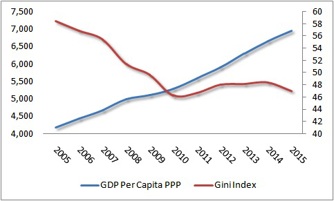 Figure Bolivian Per Capita Income and Gini Index, 2005-2015