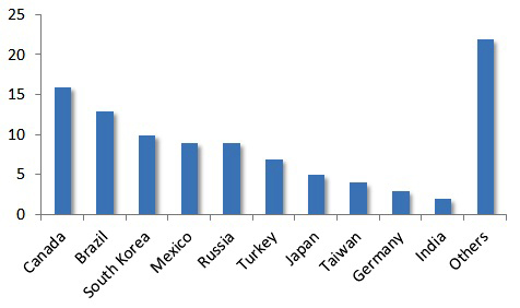 b. US Aluminum Imports: Major Source Countries (%, Jan-Oct 2017)