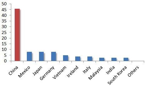 c. US Trade Deficits: Major Source Countries (%, 2017)