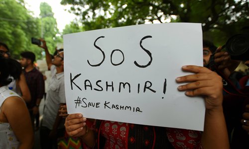 Indian protesters go against the proposed bifurcation of the state of Jammu and Kashmir on August 5 in New Delhi, India. Photo: IC