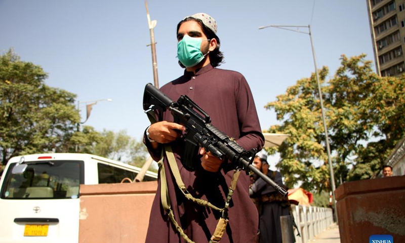 A Taliban fighter stands in Kabul, capital of Afghanistan, Aug. 28, 2021.Photo: Xinhua