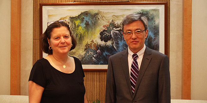 On September 10, SIIS President Chen Dongxiao meets with Ms. Linda Jakobson, research fellow at the Lowy Institute for I