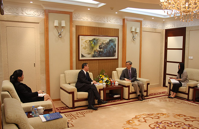 On September 24, SIIS President Chen Dongxiao meets with Mr. Ong Siew Gay , Consul-General of Singapore and talks about
