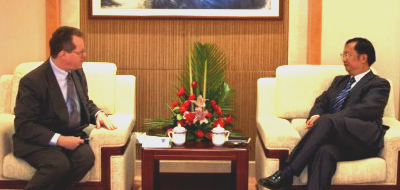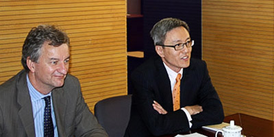 Laszlo Kuti, Consul General of Hungary in Shanghai visited SIIS and talked with SIIS President Yang Jiemian about the co