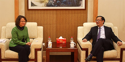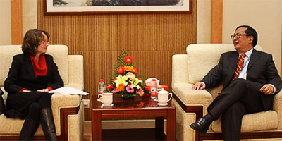 February 14, SIIS President Yang Jiemian meets with Ms. Catrina Schläger, Resident Director of Friedrich-Ebert-Stif