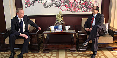 April 17, SIIS President Yang Jiemian meets with Mr. Peter Saundry, Executive Director of the US-based National Counci