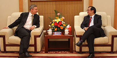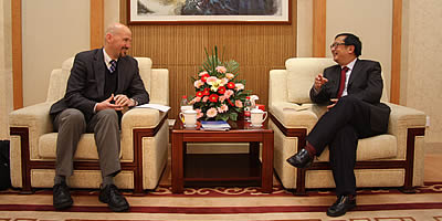 April 18, SIIS President Yang Jiemian meets with Amb. John Ashton, Special Representative for Climate Change of UK. Dr