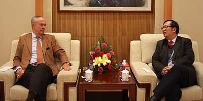 January 12, SIIS President Yang Jiemian meets with Mr. Christophe BAHUET Director of the Division for Sustainable Deve