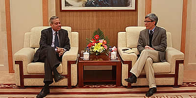 April 10, SIIS Vice President Chen Dongxiao meets with Mr. Jeff Swiryn, Project Director of the Office of the Vice Chair