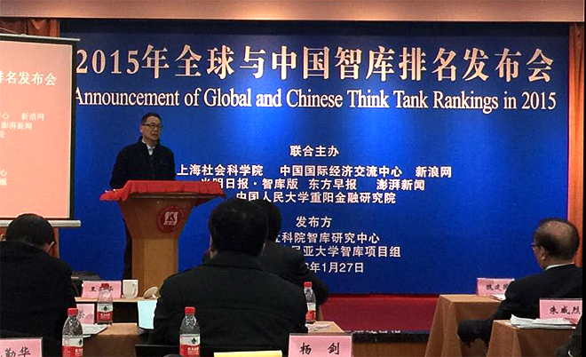 Vice President Yang Jian attends the Announcement of Global and Chinese Think Tank Rankings in 2015