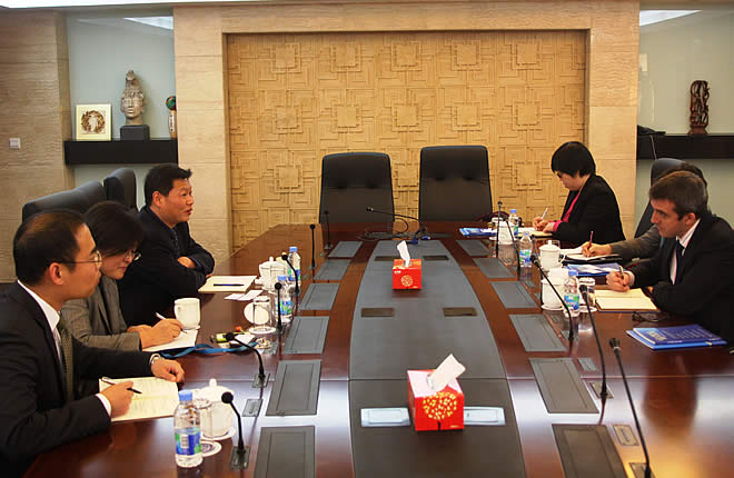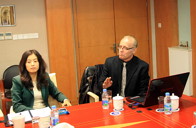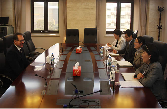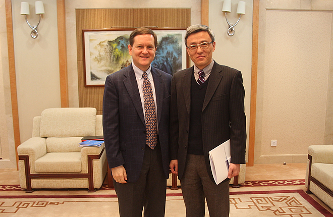 On February 21, President Chen Dongxiao meets with Mr. Mathew Goodman, Director of Economic and Political Division of Ce