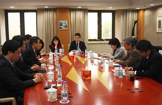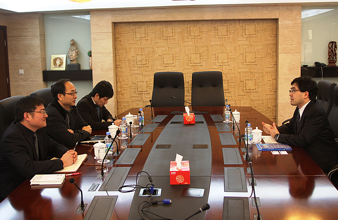 On February 10, Dr. Takamoto Suzuki, Senior Economist from Marubeni Research Institute visits SIIS and talks with Prof.