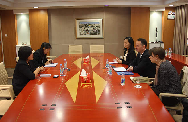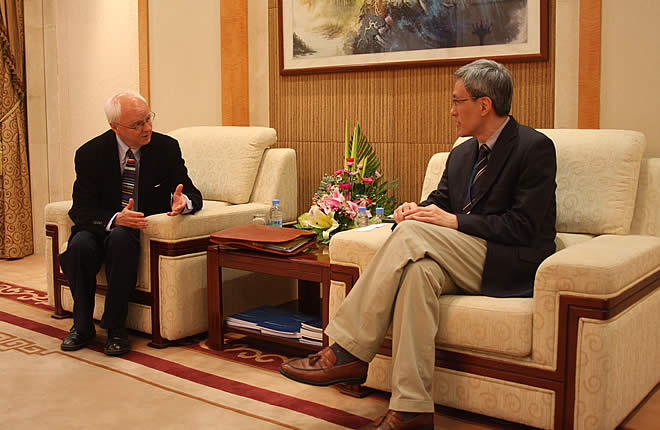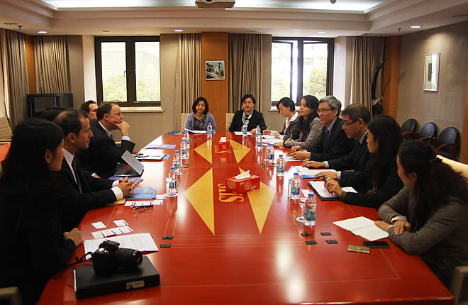 October 25, Mr. William Duff, U.S. Consul, visits SIIS and has discussion with Dr. Wu Chunsi, Executive Director of the
