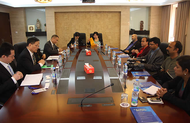 November 1, the media delegation from India visits SIIS and discusses with Prof. Zhao Gancheng, Director of the Center f