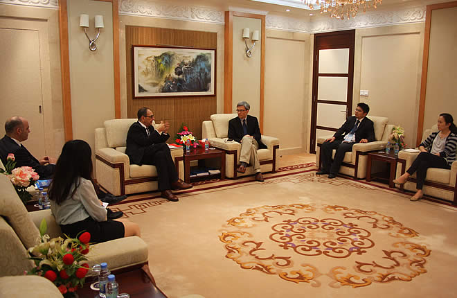 October 9, SIIS President Chen Dongxiao meets with Amb. Shalom Cohen, Acting Consul General of Israel and talks about bi