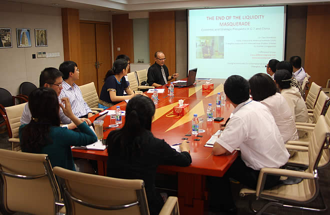 June 28, SIIS visiting scholar Dan Steinbock gives a lecture on “ The end of liquidity masquerade”. Dr. Shao