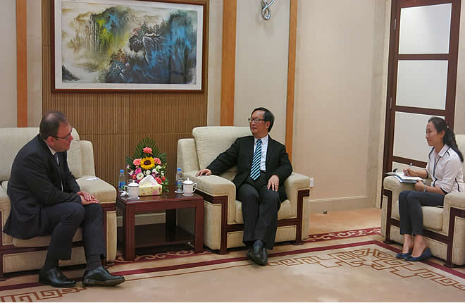 President Chen Dongxiao meets with Mr. Hans Dietmar Schweisgut, Ambassador of the EU to China