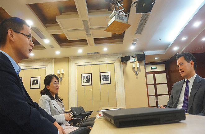 On Nov. 16th, Mr. Kato Yoshikazu, Japanese Visiting fellow at SAIS, Johns Hopkins University visited SIIS, and exchanged
