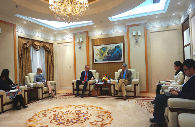 On Nov. 2nd, Mr. Jill Price, Vice President of of Asia Pacific Foundation of Canada visited SIIS, and exchanged views wi