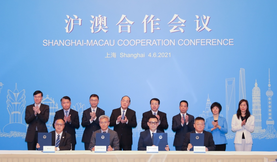 2021年6月4日,沪澳合作会议第一次会议在沪举行,澳门特别行政区行政长官贺一诚,上海市委副书记、市长龚