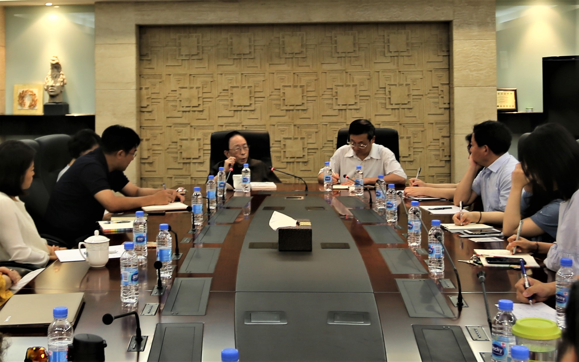 2019年7月24日,国家发展和改革委员会政策研究室副主任韩振海一行来我院调研。陈东晓院长主持座谈,院长助理张海冰、世界经