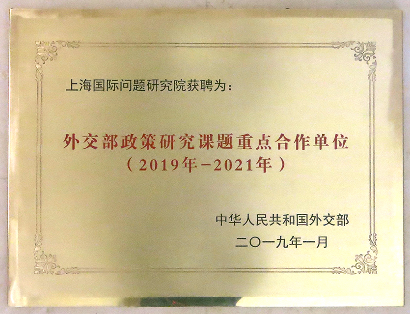 2019年1月,上海国际问题研究院正式获聘2019-2021年度“外交部政策研究课题重点合作单位”。我院是首批外交部政