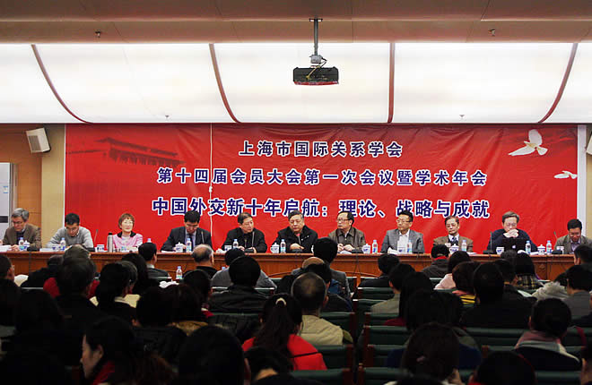 2013年12月2日,上海市国际关系学会第十四届会员大会第一次会议暨“中国外交新十年启航:理论、战略与成就”学术年会