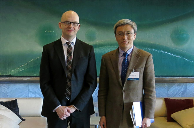 2月16日, 联合国秘书长副特别代表、联科行动代表巴巴加•西塞(Babacar Cisse)来访我院,同陈东晓院长、学术委员会主任杨