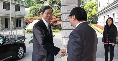 4月25日下午,韩国新任驻沪总领事安总基(Chong-ghee AHN)来访我院作礼节性拜访。杨洁勉院长会见韩国总领事一行。亚太研究中心