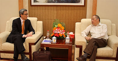 4月28日下午,陈东晓副院长会见中国日报名誉主编朱英璜。