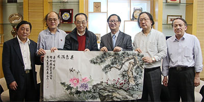 4月26日,我院举行建党九十周年书画讲座活动。本次活动特邀海上书画名家后裔联谊会副会长程助和任舜华等名家现场题字作画。杨洁