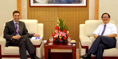 2010年7月18日上午,英国驻华大使馆政务参赞卓丹廉(Dan Chugg)先生一行2人来访我院,与杨洁勉院长就中英关系、世博外交等问题