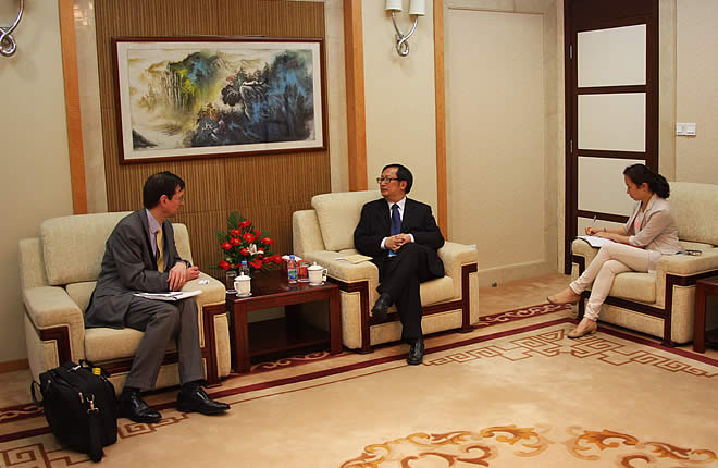 6月24日,陈东晓副院长会见美国前商务部部长约翰•布兰森(John E. Bryson)率领的威尔逊中心亚洲新议程项目(New Asia Init